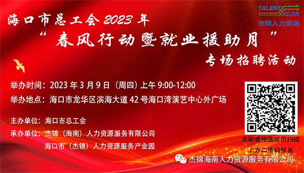 6月24日上午9時-12時,由海口市龍華區人力資源和社會保障局、海口市(龍華)人力資源服務產業園主辦,杰...